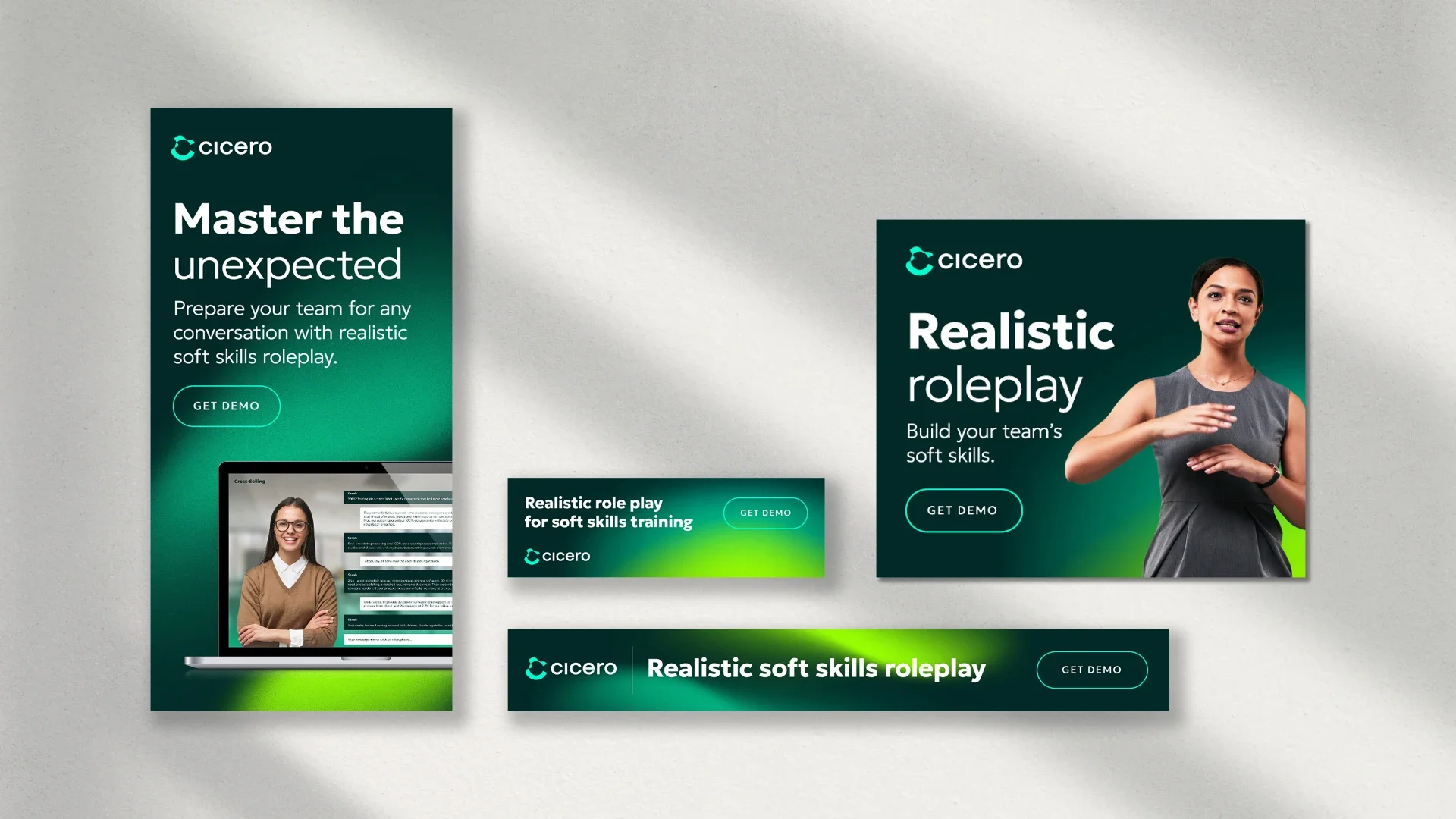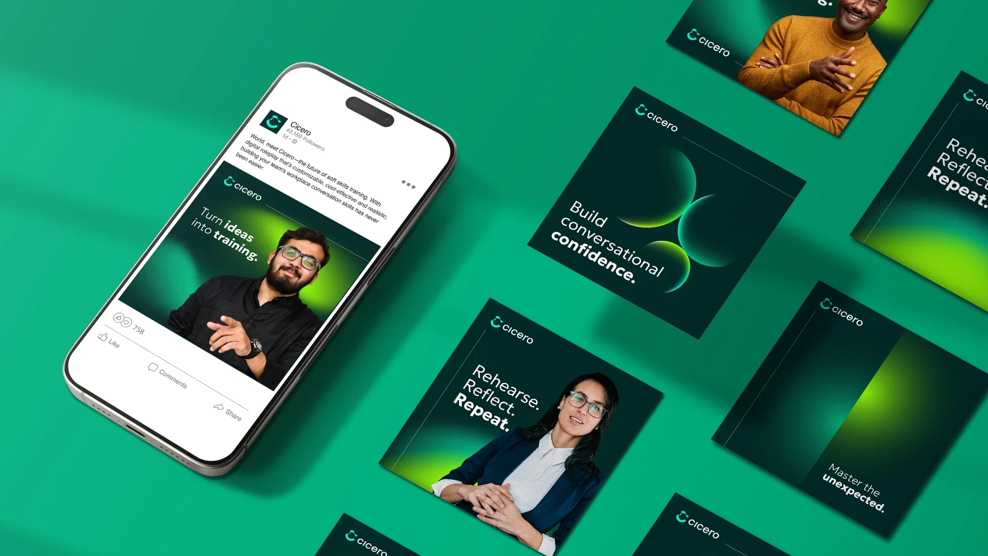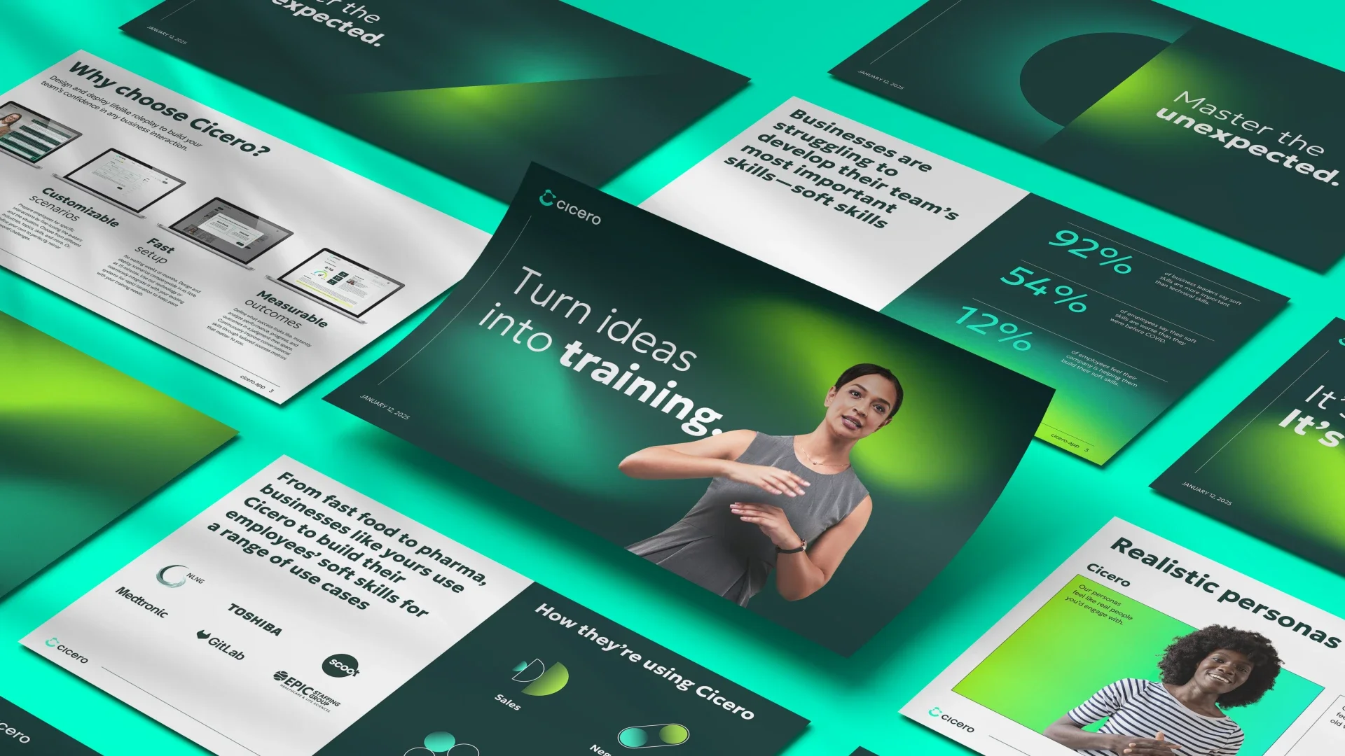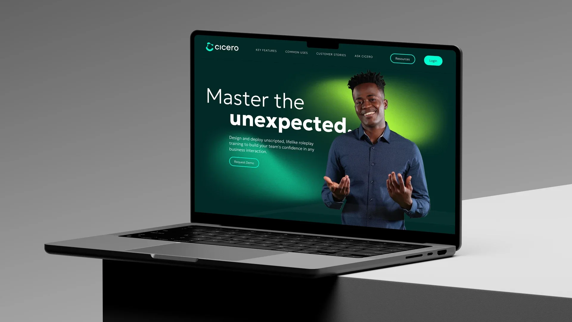Cicero is an AI-driven roleplay platform that helps employees practice any workplace interaction, from sales calls to customer service to negotiations. With very new technology and growing competition, Cicero needed a clear, compelling story and a visual identity that felt as innovative as the product itself.
