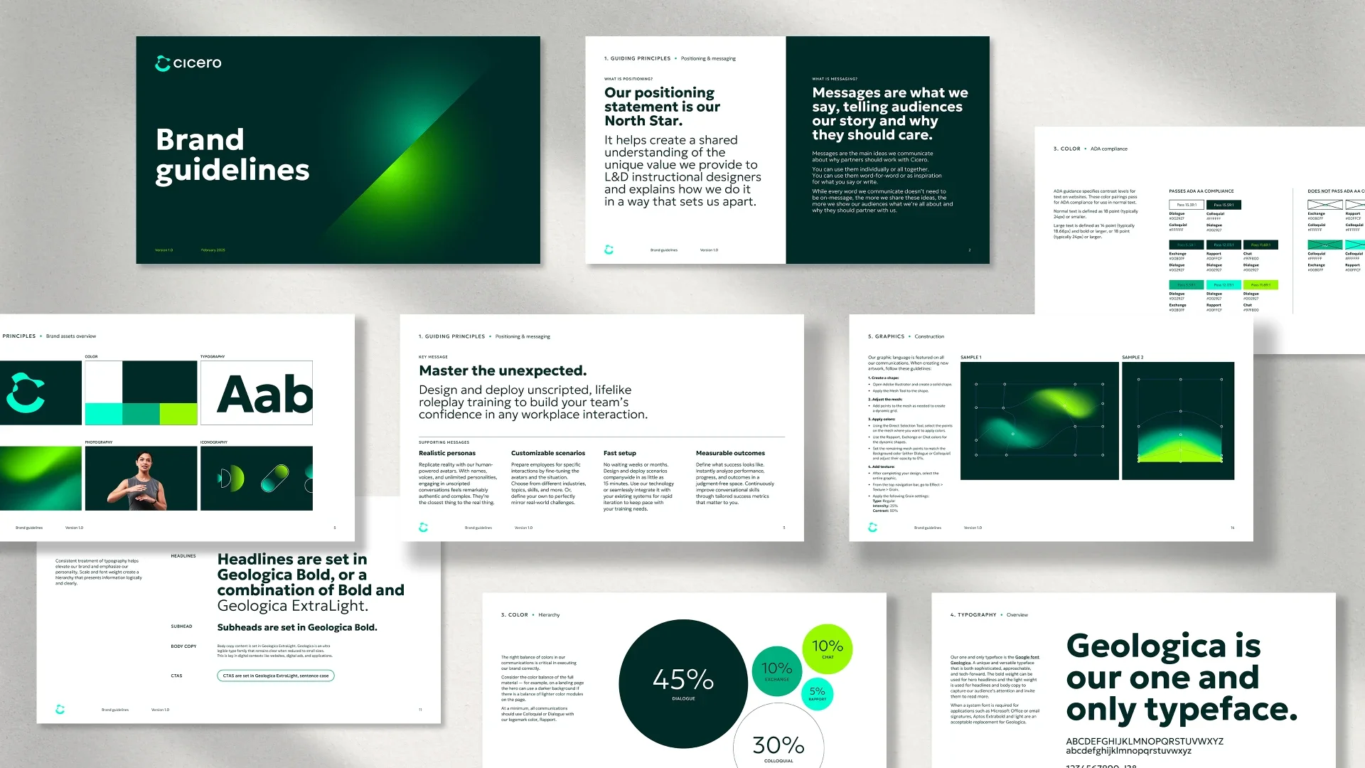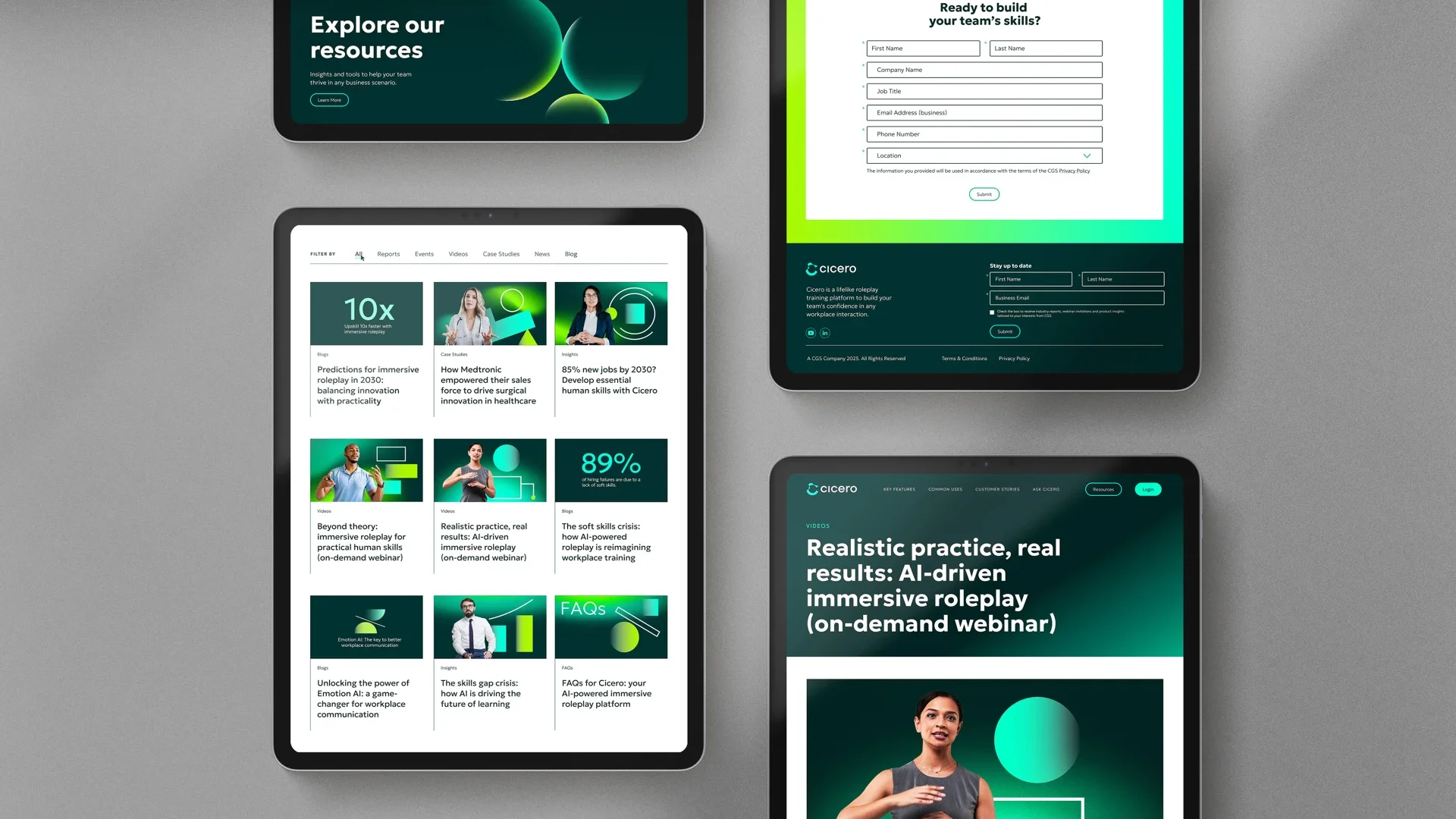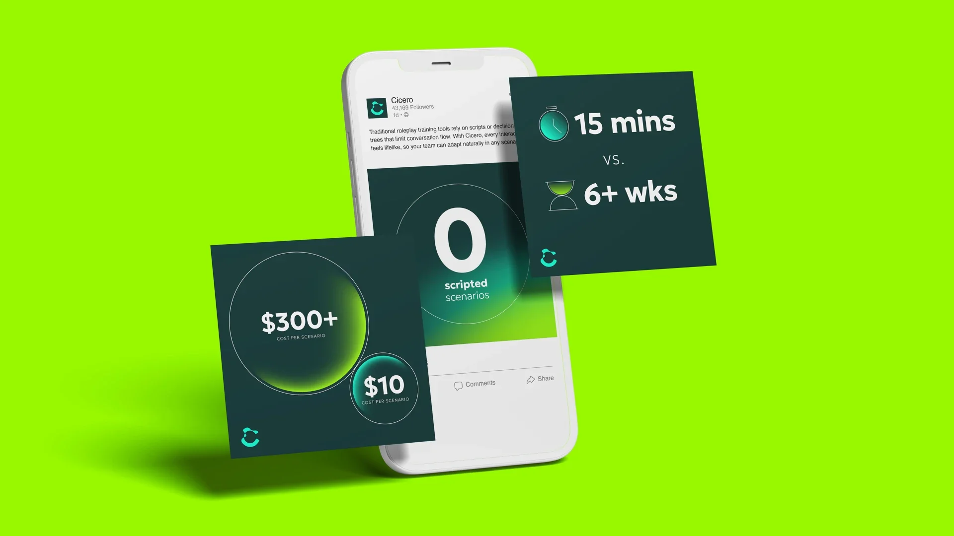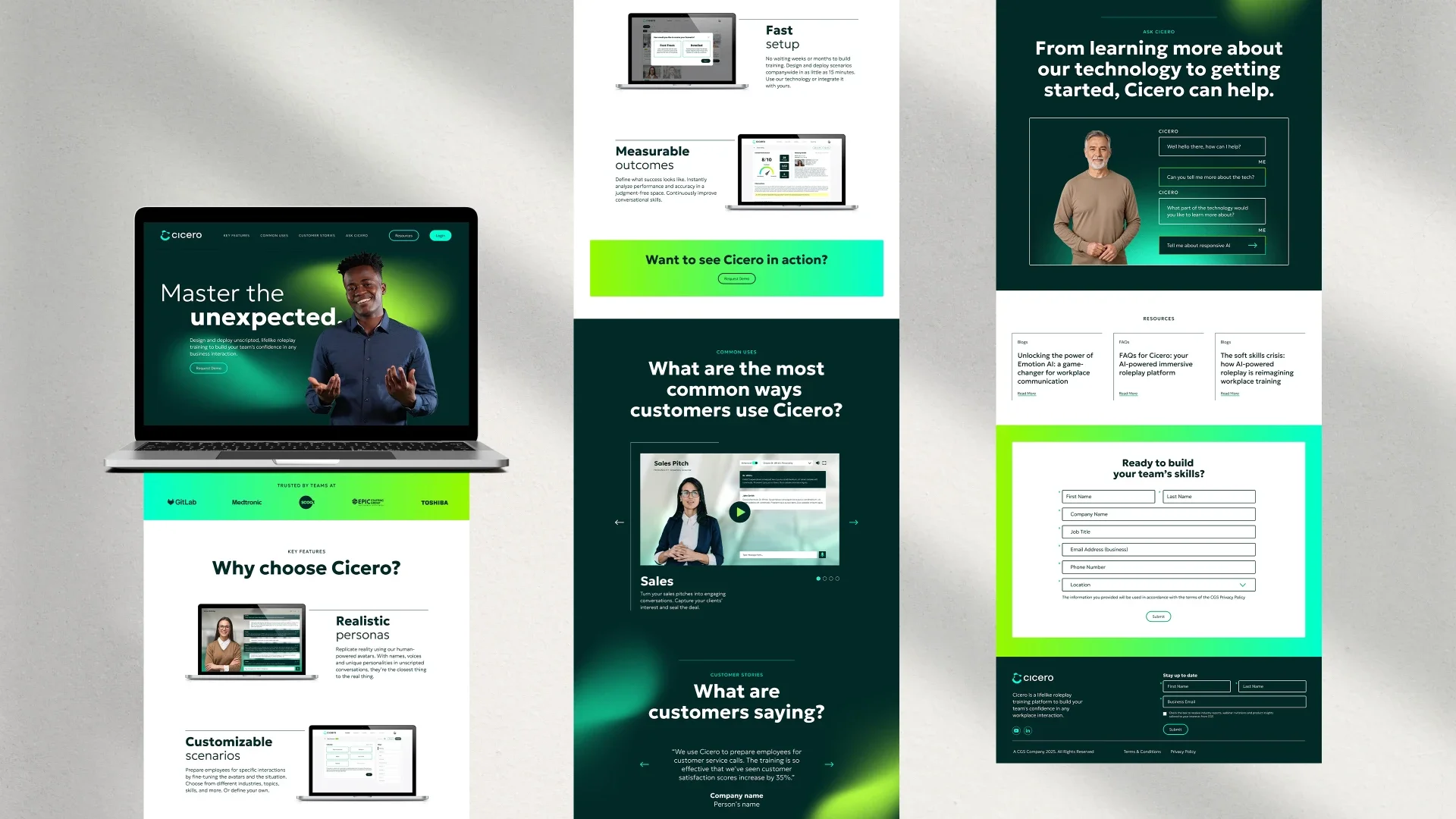 Cicero is an AI-driven roleplay platform that helps employees practice any workplace interaction, from sales calls to customer service to negotiations. With very new technology and growing competition, Cicero needed a clear, compelling story and a visual identity that felt as innovative as the product itself.