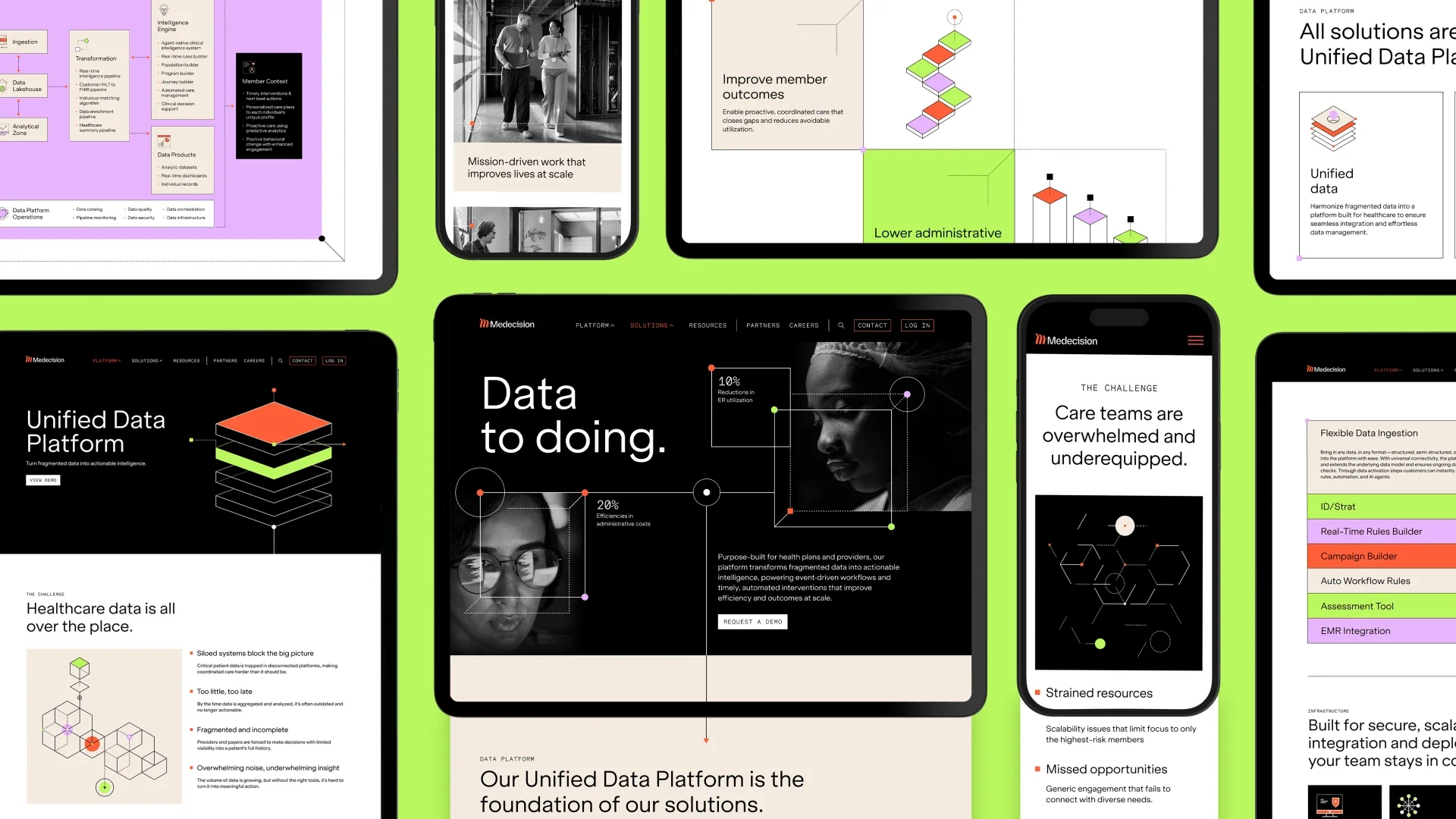 Based on the idea of “Data to Doing,” we developed a new visual brand strategy and identity that reflects the power of the platform and showcases the outcomes Medecision drives. We also built a new website, marketing materials, videos and more to bring the brand to life.